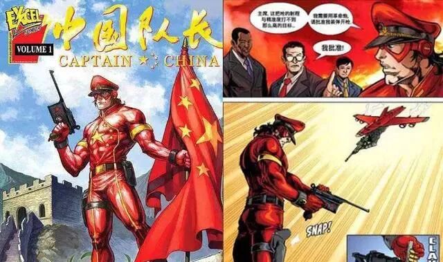 《中国队长》是一部由在漫威工作过的美籍华人王家麒操刀主编的一部偏搞笑类的漫画,用以借助这个角色的力量来讽刺美国的“超级英雄”们,但据原作者所说,在2009年,他回国一次国之后,内心已经对自己当年的行为感到悔恨,于是回去以后,推翻了自己原本的构想,重新架构出一个“中国队长”的故事。