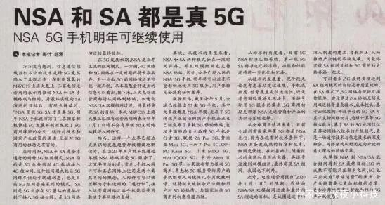 很多媒体甚至为此表示,NSA不是5G,SA才是5G,但人民日报也曾出来辟谣,实际上两者都是真5G。