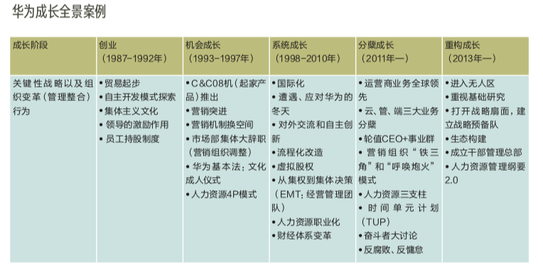 综观华为的成长历程,有两个鲜明的特征:第一,战略和组织两个维度始终在动态调适中齐头并进。华为解决了国内大部分民营企业未能解决的组织建设和能力提升问题。第二,变革是一种常态,始终存续于企业成长的全部过程之中。