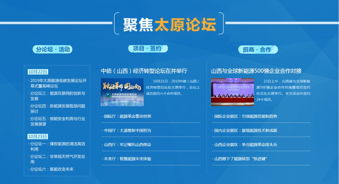 太原能源低碳发展论坛是2016年经国务院批准,由科技部、商务部、国家能源局、山西省人民政府共同主办的国家级、国际性、专业化论坛,已成功举办三届,在国内外能源领域具有一定的影响力,并正在发展成为国际能源领域的高端对话平台、科技成果发布平台和国际合作对接平台。