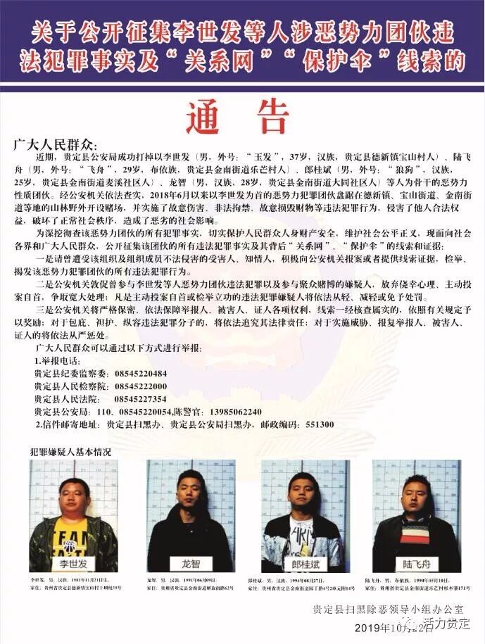 【扫黑除恶】关于公开征集李世发等人涉恶势力团伙违法犯罪事实及“关系网”“保护伞”线索的通告