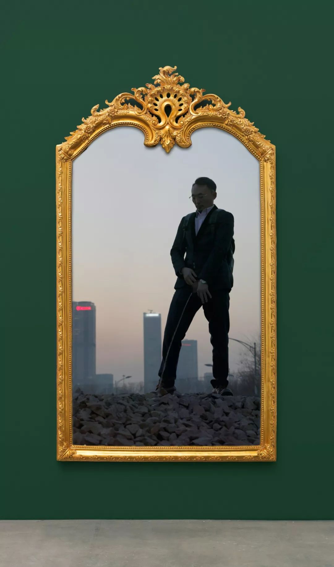 奢华的金色画框中并非贵妇或女人体,而是来自不同年龄段与身份等级,处于不同场景中小便的男性。他们的私密行为被艺术家强行介入,记录下来。他们对着展厅与观众,扑面而来。画面中的形象不是供男性养眼的丰乳肥臀的性感“ 尤物”。社会不同阶层的男性,在此时成为被艺术家( 女性)观赏的“ 尤物”。身份各异的男性面对艺术家突如其来的拍摄,有的镇定自若,傲气十足 似乎某些上流社会的人撒尿都喜欢被仰视,而有的破口大骂,凶神恶煞,也有的低头游走于熟悉而又陌生的大城市中, 对未来迷茫而困惑。