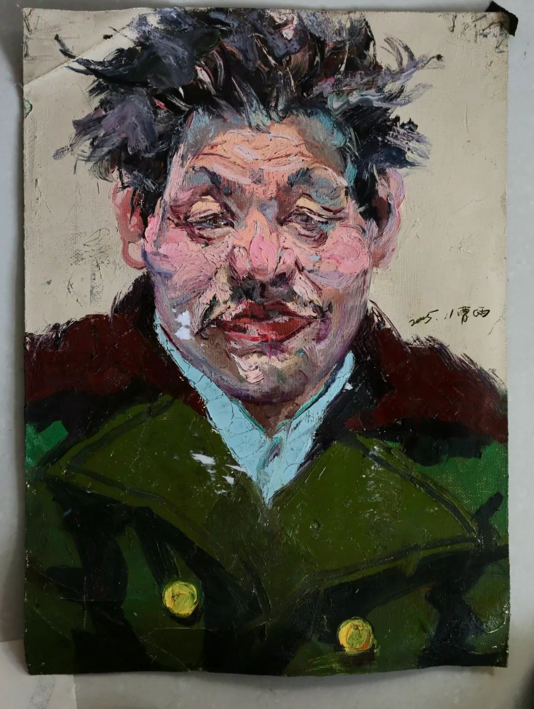 曹雨为爸爸画的肖像 2009年(我父亲曾一直想要一幅肖像画,他说:“供你读了几年中央美院,也没见你给我画一张很像我的油画。”)