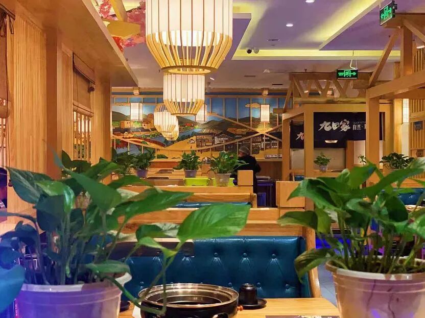 全都沿用一贯的 日式原木风 的装修实木的桌椅、 浪漫的樱花 、镂空的吊灯只为为您营造 典雅温馨 的用餐环境更有贴心 轻隔断设计 ,三五好友把肉言欢~