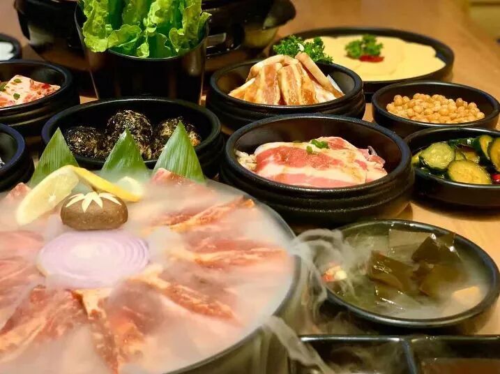 中间的炭火散发着阵阵热浪,五行缺肉的你