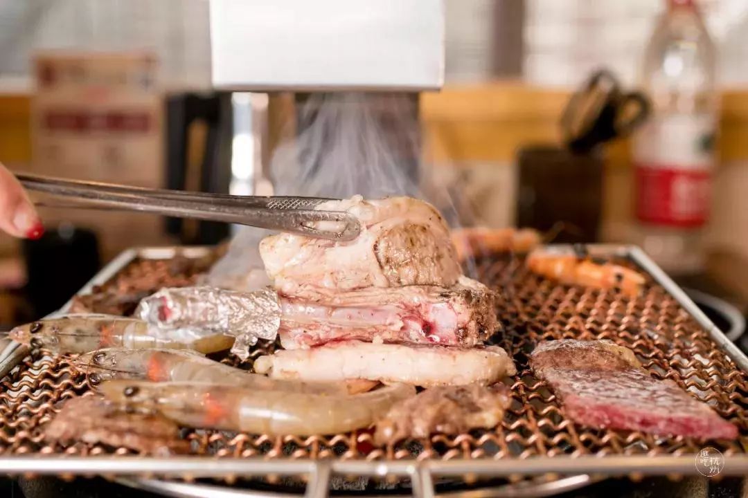 不要犹豫,直接丢进烤盘上烤制。肋条在炭火的加持下滋啦作响,每一声都是一次食欲暴击。
