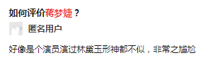 且不止剧中的表现被批评,角色之外的蒋梦婕本人也一直在争议中不能自拔。 一下就出演了林黛玉这样的角色,几位主演也只有她从少年演到了成年,引起了不少人的联想。