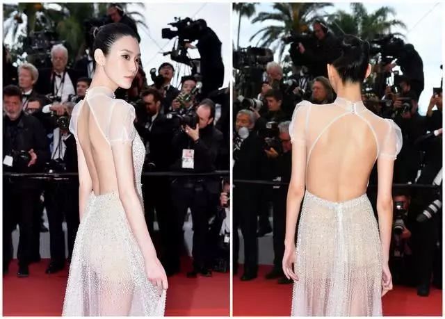 第一套戛纳红毯造型是一件前短后长的蓬蓬裙,这套裙子是藏孕肚的完美选择可这一身也是十分考验身材的,要求四肢纤细,侧身单薄,虽然怀孕好几个月了,但超模纸片身材在线,奚梦瑶侧身依旧超级单薄。