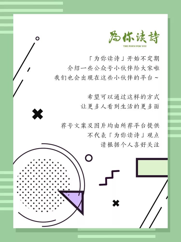 这里是「为你读诗」的荐号栏目,我们会不定期介绍一些不同类别的公众号给你,希望能让你通过屏幕这扇窗,看到更多风景。