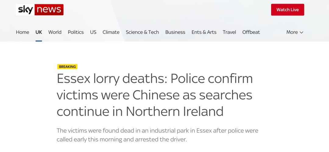 环球网:“英国埃塞克斯警方证实:39具尸体中31名男性,8名女性”,