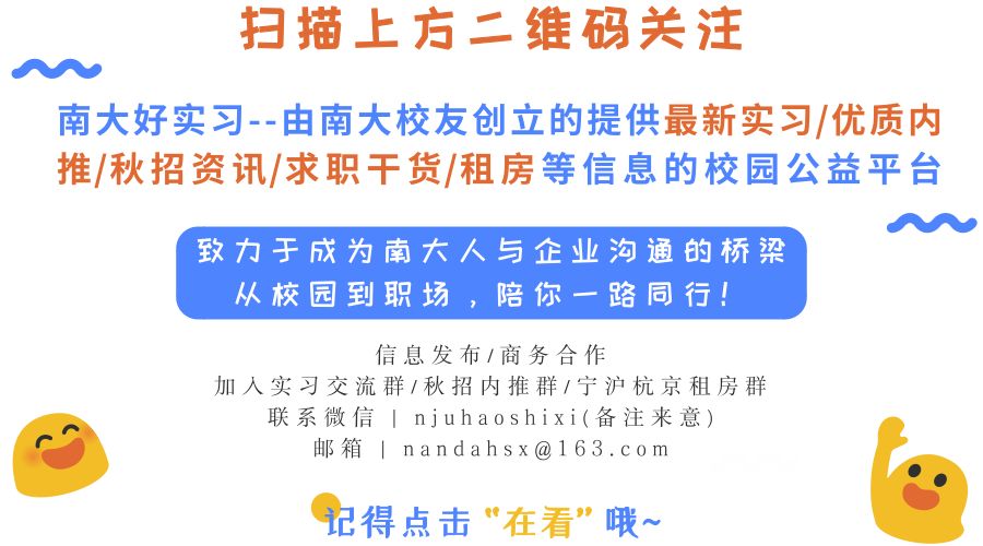 投递简历时可注明是在南大好实习上看到的。