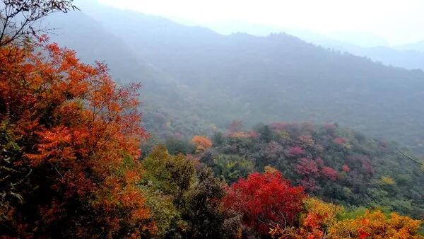 还有 " 北方桂林 " 之称的天桂山,山上的黄栌、栎树、楸树、橡树和丹枫等已经由绿而黄,由黄而红,等到万山红遍,将是层林尽染。此外,极具个性的沕沕水空中画廊,沿途红叶热烈如火,两侧山体巍峨高耸,盘山路上步步有景,处处如画,可谓是 " 人游山峡里,宛如画图中。"