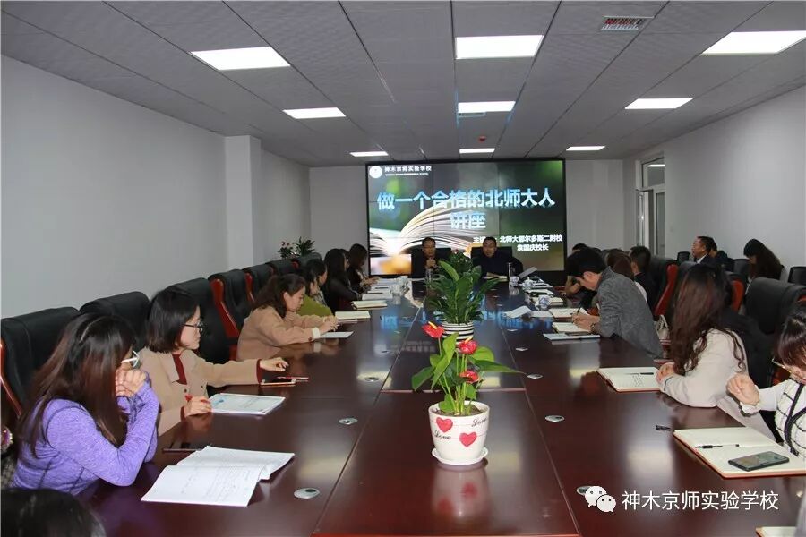 下午,鄂尔多斯二附校袁庆国校长作了题为《做一个合格的北师大人》讲座,讲述了他与我校的深厚渊源,并历数所有新建校之艰难,鼓励学校全体教师要鼓足干劲,充满信心,树立高远的教育理想,以改变中国基础教育为宏远目标,扎根课堂,做好教书育人工作。