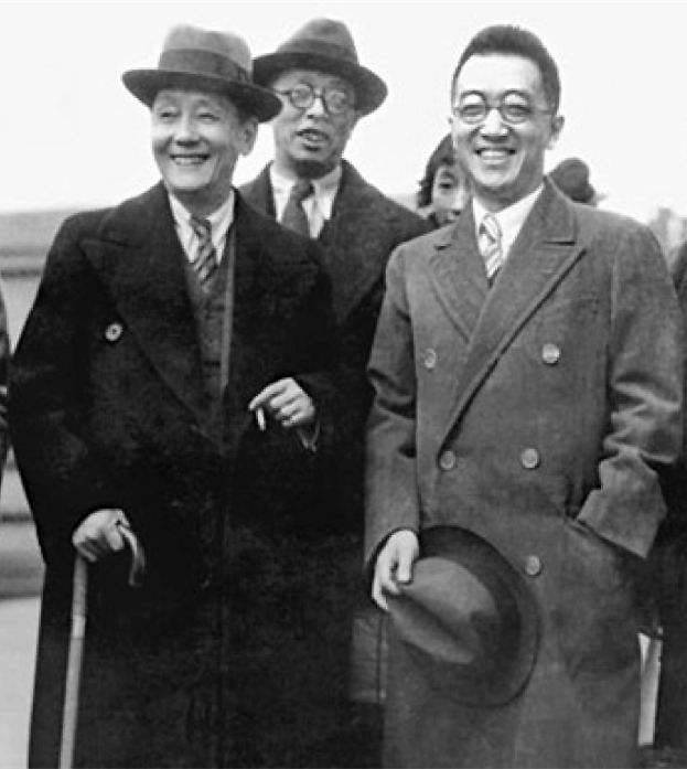 穿呢子大衣的胡适与友人