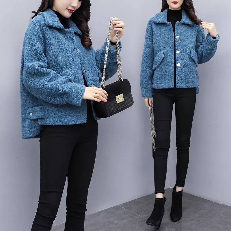 韩版宽松毛呢小香风皮毛一体羊羔绒外套HQ131
