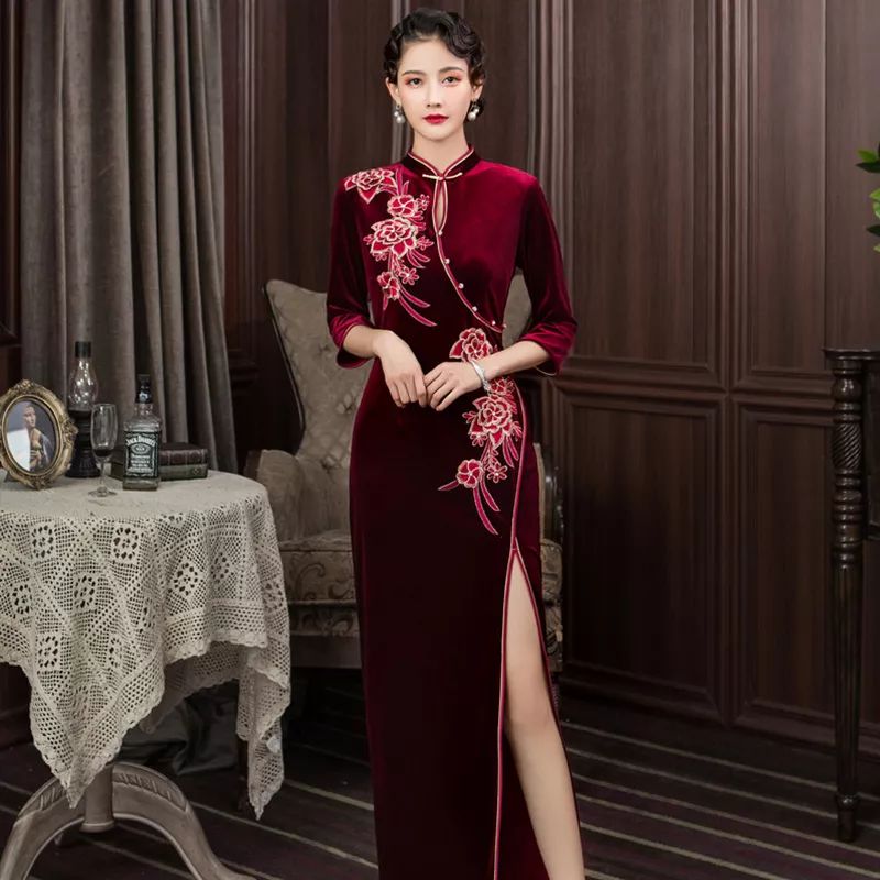 【离香令】高档丝绒面料修身旗袍JLM9077