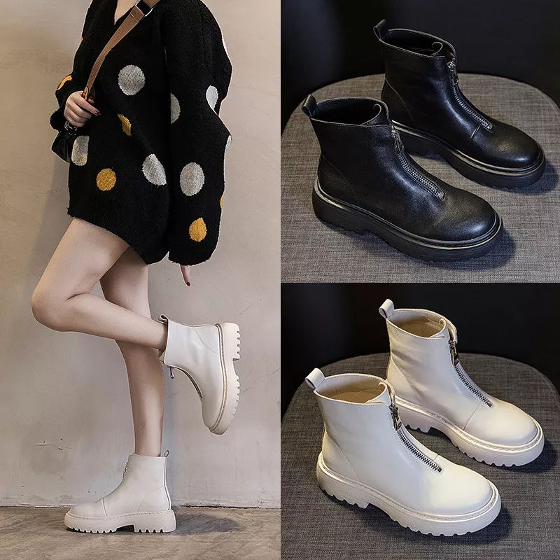 新款前拉链马丁靴真皮英伦风系带短靴JZ5012