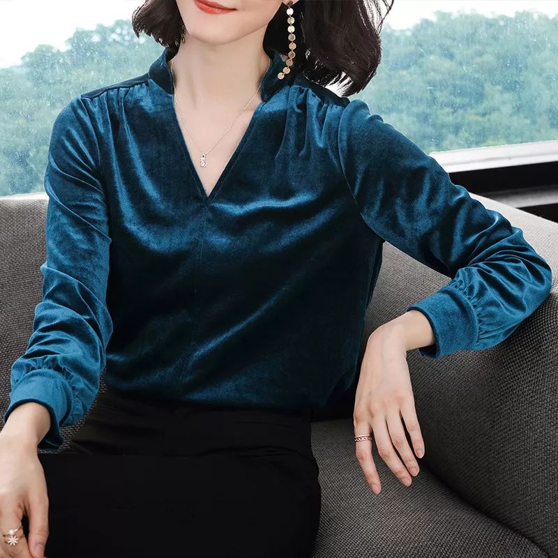 新款金丝绒打底衬衫上衣百搭宽松大码KQL7721