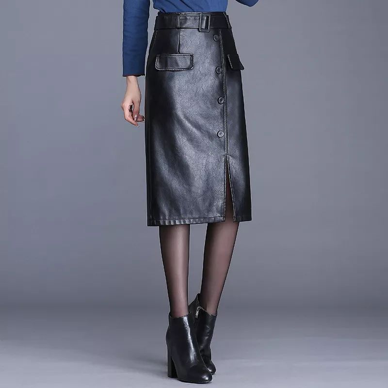 【配腰带】单排扣包臀半身皮裙气质显瘦AL998