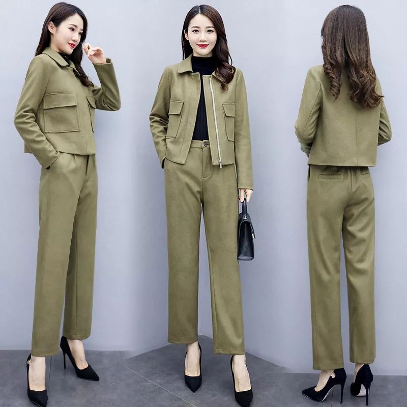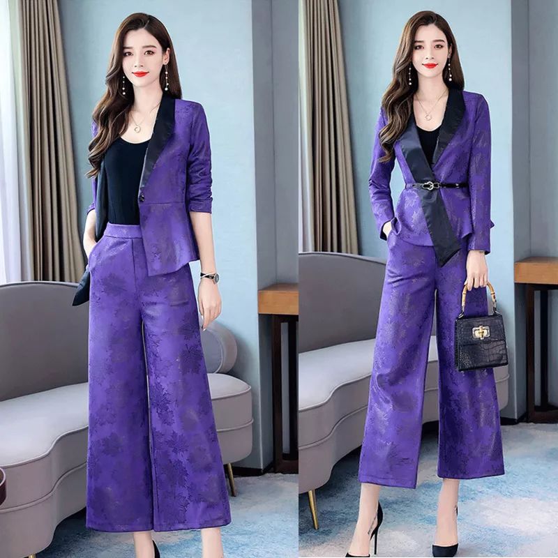 时尚显瘦麂皮绒西装搭配阔腿裤套装RSLD8018