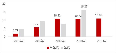 图 – 2019H1营收同比下降37.9%(单位:亿元)