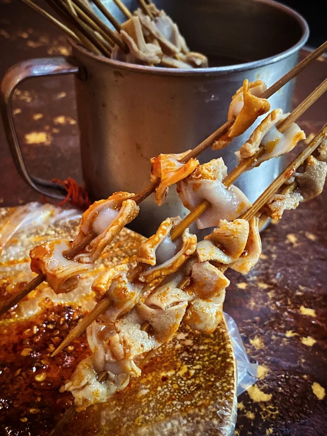 李老板说:吃他们家牛肚,一定要蘸点店内熬制的红油辣子,然后一串一串细细品尝才行哦~