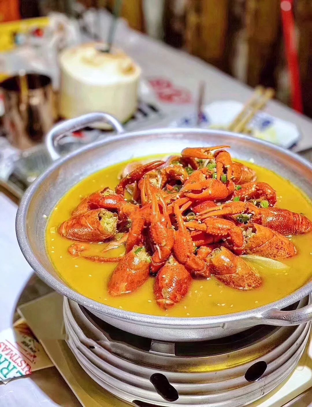 新鲜的小龙虾去掉虾线,用秘制的酸汤做锅底烹制。浓郁酸爽的味道很有特色。比起麻小更多是吃的麻辣味,酸汤口味的小龙虾更能体会龙虾的鲜味哦!