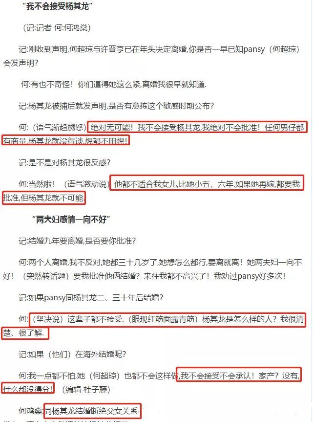 声称超琼敢和杨其龙结婚就立马断绝父女关系——