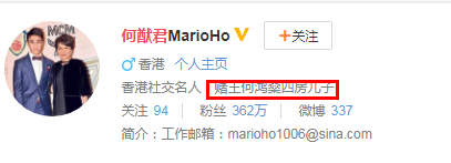 有吐槽他可以把微博认证从“赌王四房儿子”改成“赌王长孙之父”的——