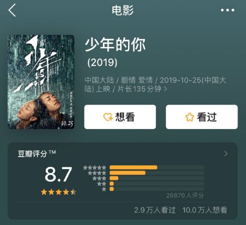 易烊千玺主演的《少年的你》,票房破亿,豆瓣评分8.7,你们觉得易烊千玺在影片中的表现如何?