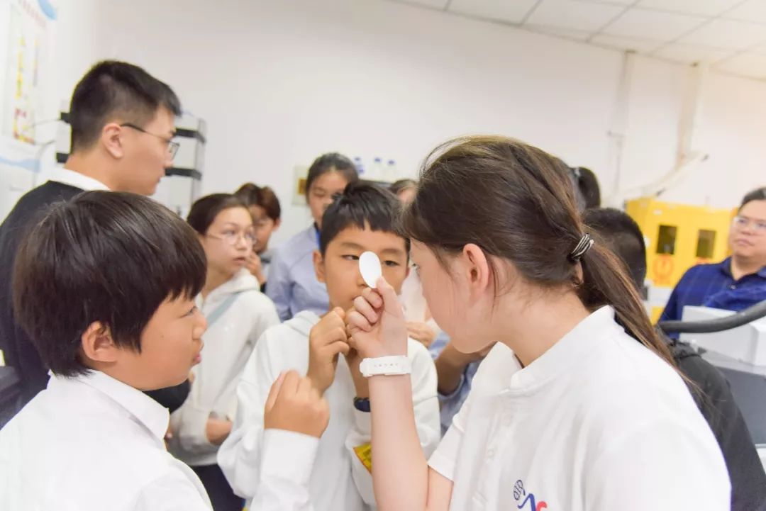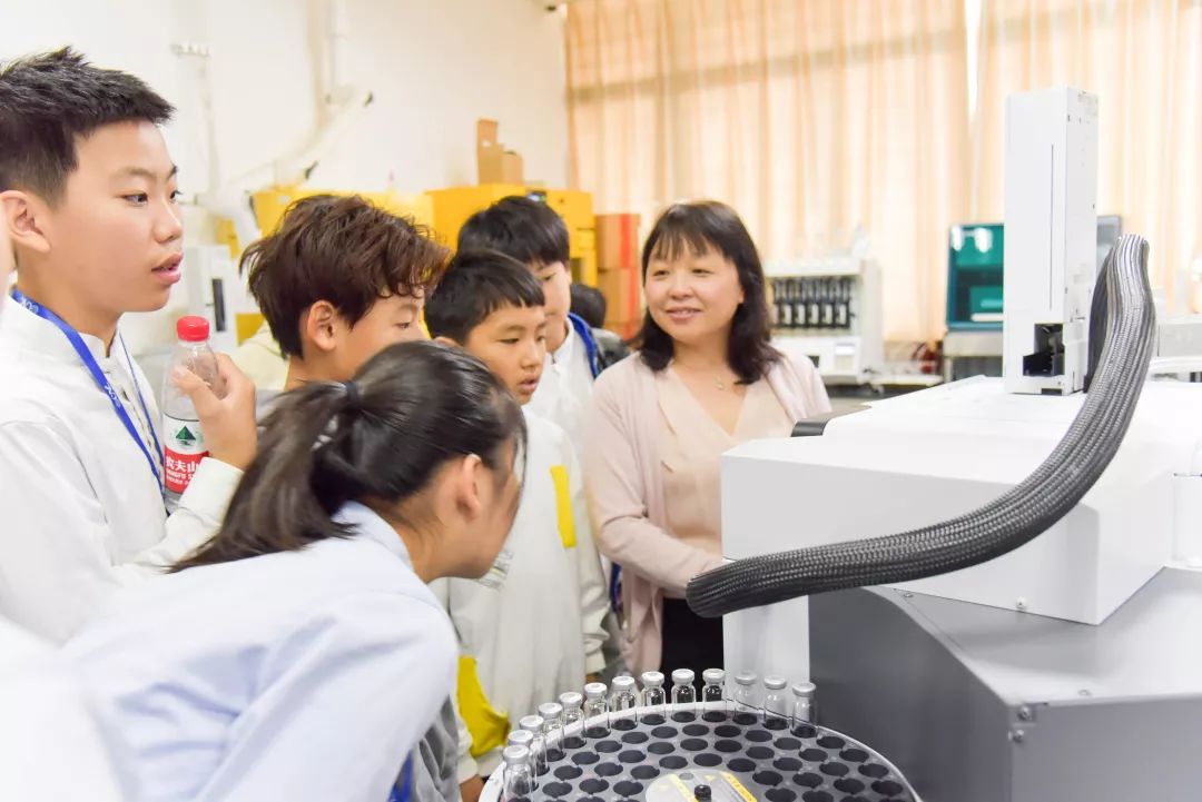 孩子们认真地听、仔细地记、积极地提问,严肃的实验室里上演了一场“实验大学问”与“科学小知识”的智慧碰撞。