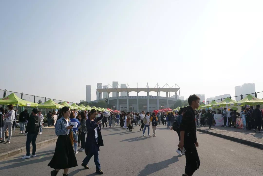 行走在体育场前的马路上,可以看到这里人山人海,同学们正在纷纷寻找自己喜欢的社团的摊位。
