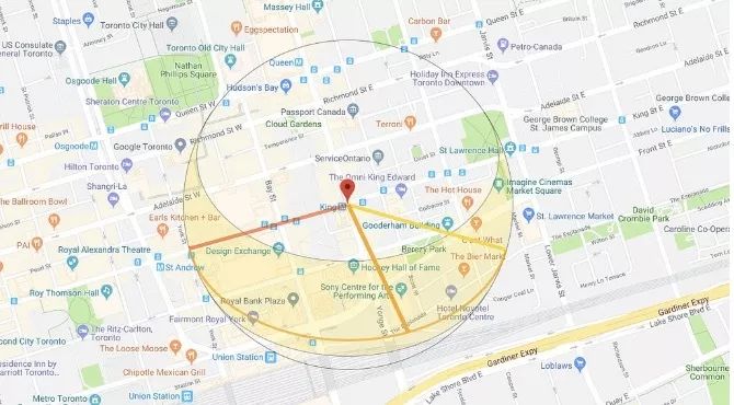 道路需要成一直线,两边有高楼大厦,向西方向需要毫无遮挡。建议最佳地点是King Street、 Adelaide Street或Bloor Street在Church Street至University Street的区间;