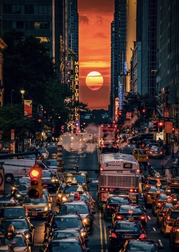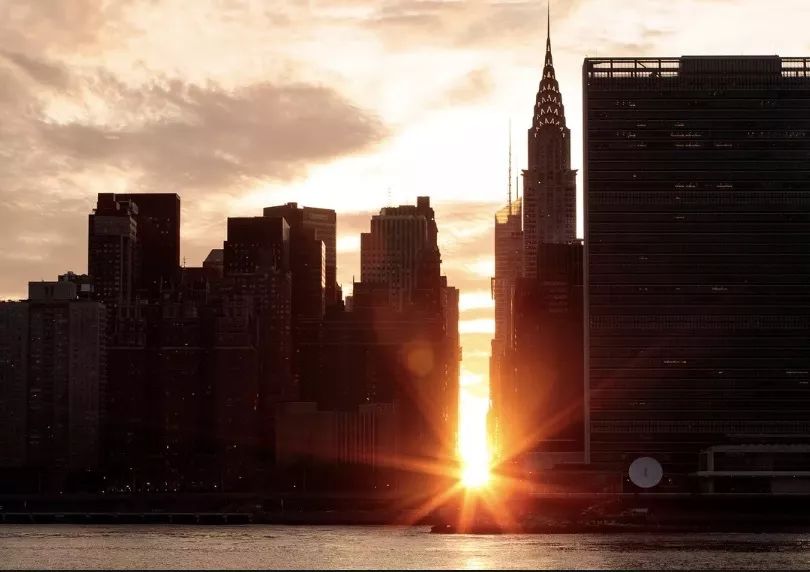 悬日的概念最早是从曼哈顿产生并流行起来的。也来欣赏下曼哈顿悬日(Manhattanhenge)的美景。