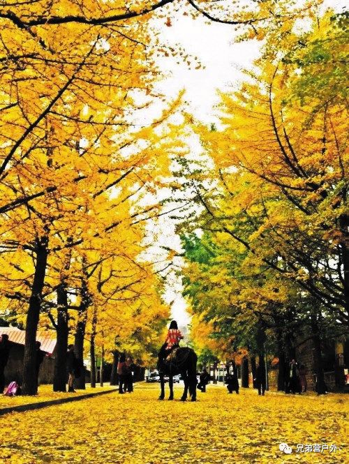 太光街的银杏大道,每年9月末到11月初封路,不通汽车,不扫落叶,10月20日以后风景最好