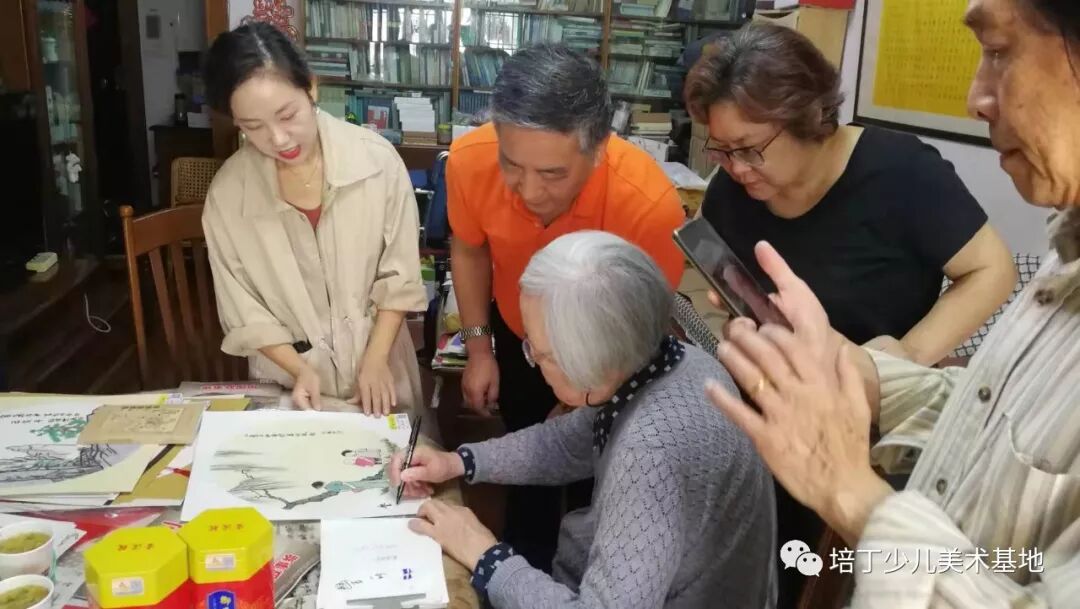 十月是一个丰硕的季节,是一个金色的美好季节,金秋十月培丁美术教育创办人明子老师、方格子老师及现代漫画家卞家华先生夫妇等一行赴上海拜访了中国漫画大家丰子恺先生女儿丰一吟先生及丰子恺故居,奶奶今年已90岁高龄,精神矍铄,给大家做了近身指导,签名题款,肯定了烟台丰子恺研习工作室师生的学习热情和取得的成绩,鼓舞了烟台丰子恺学子的学习热情 ,鼓励大家把丰子恺艺术继承发扬光大。