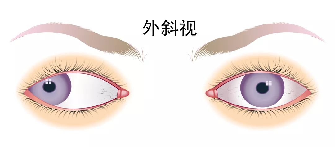 眼位向偏斜,一般可分为间歇性与恒定性外斜视。间歇性外斜视因病人具有较好的融像能力,大部分的时间眼位可由融像能力维持在正常的位置,间歇性外斜视常会发展成恒定性外斜视。
