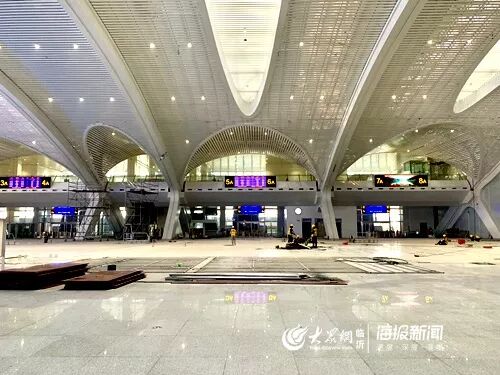 大众网?海报新闻记者在临沂北站看到,目前整个临沂北站已基本建设完成,建设工人们正在紧锣密鼓地进行通车前的准备工作和配套设施建设。大厅外,工人们正在铺装地面,给外幕墙装饰铝合金板,大厅内的工人正在进行地面清理,不久这里将安装上舒适的座椅,供乘客候车休息。