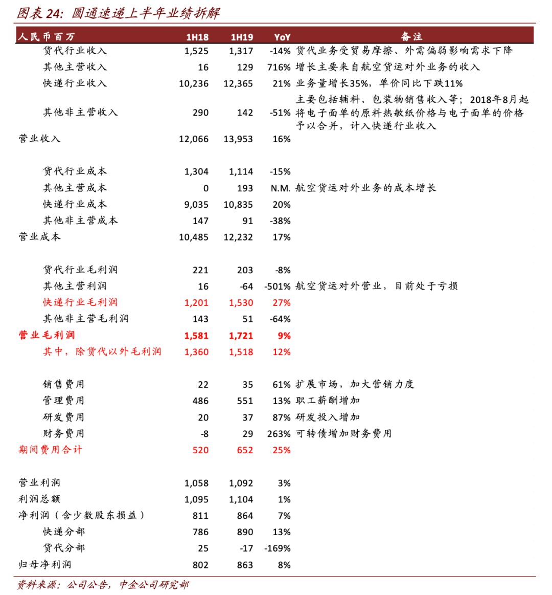 因此,剔除计入科目的变化导致的影响,我们认为,扣除货代业务之后的毛利润增速(12%)能比较合理的反映公司快递业务的经营情况。
