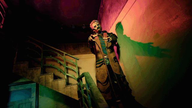 “诅咒之屋”由新鬼王暗黑恶魔布莱恩掌管,擅长施幻术,让你觉得他时刻在你的左右。鬼怪们将在荒凉豪宅的大厅、客厅和餐厅里肆意出现,进屋后的每一步都请屏住呼吸,小心惊动鬼怪!