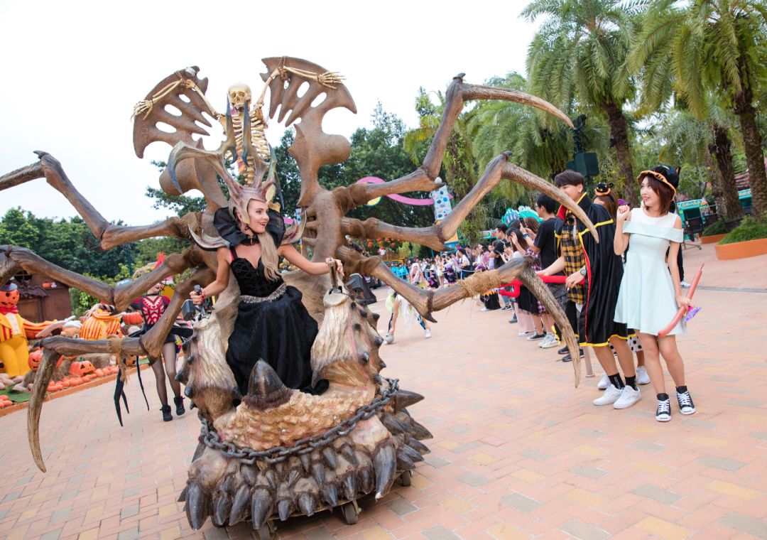 白天和黑夜一样精彩的开心鬼马大巡游,逗趣的开心鬼和卡卡虎乘坐万圣主题花车向你驶来,大蜘蛛、犀牛车、南瓜、糖果、丑萌小鬼齐出动,一次过满足你对万圣节的欢乐想象。