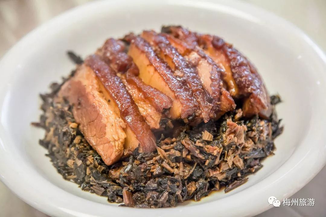 梅菜扣肉:这一道菜真的百吃不腻,干韧的梅菜吸收了猪肉的油腻,令猪肉肥而不腻,而梅菜多汁甘香,是一道色泽油润、香气浓郁的美味佳肴。