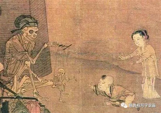 他这么一说,大家才明白宋朝战乱不断,贫富差距极大,“朱门酒肉臭,路有冻死骨”,李嵩把艺人画成骷髅,原来是想说他们生活艰难。按这样的逻辑这幅画就说得通了,所以,大家就接受了黄公望的这个解读。