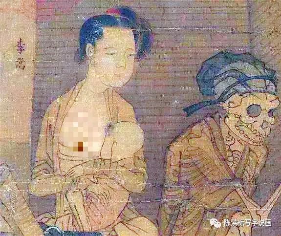 ▲怀抱婴儿的妇人面态雍容华贵,体形略胖。