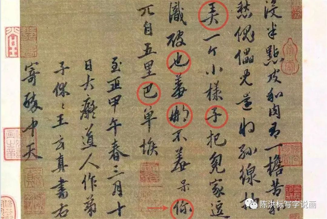 但是他的弟子王玄真就有一些扯淡了,把老师的这首小令题写在《骷髅幻戏图》边上,原本的45字变成了46个字,多了一个“你”,还另有5个字不一样(见上图的红圈)。内容变成了这样:没半点皮和肉,有一担苦和愁。傀儡儿还将丝线抽,弄一个小样子把冤家逗。识破也羞哪不羞?呆你兀自五里巴单堠。不知道是这位弟子故意为之,还是笔误,就算是笔误,这也太离谱了。
