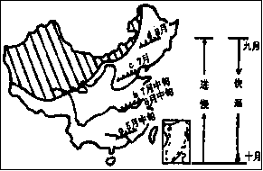 (1)中国锋面雨带的进退规律:5月—南部沿海进入雨季(华北春旱);6月中旬—长江中下游地区梅雨;7月中旬一华北、东北进入雨季;9月—雨带南撤至长江以南;10月—雨季结束。