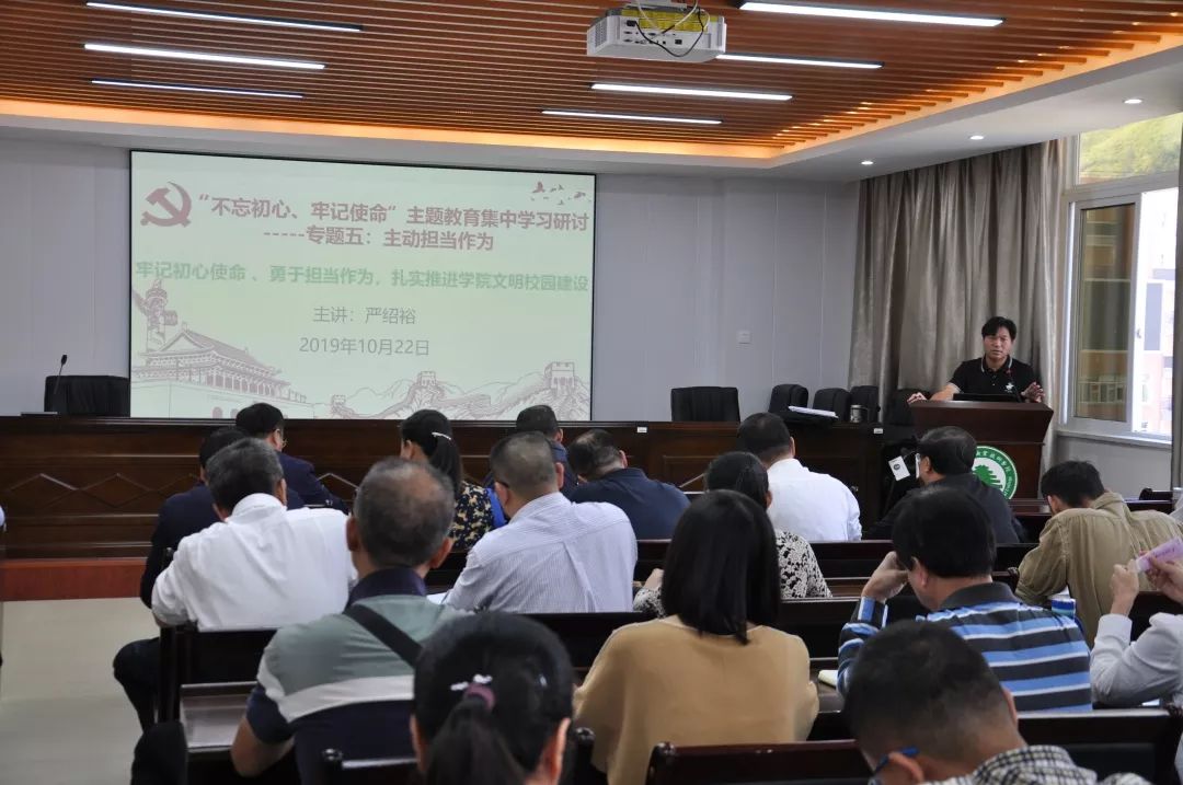 福建林业职业技术学院副院长严绍裕上“牢记初心使命、勇于担当作为,扎实推进学院文明校园建设”专题党课