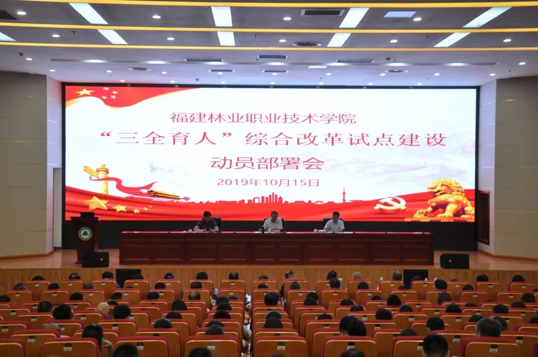 “要紧扣高校‘立德树人’根本任务,扎实推进学院‘三全育人’综合改革试点建设,培养德智体美劳全面发展的新型林业技术人才,扎根中国大地办好林业教育,奋力谱写林业发展的新篇章,为林业发展作出新的更大贡献。”在福建林业职业技术学院党委近日召开的“三全育人”综合改革试点建设动员部署会上,学院党委副书记、院长刘文开对学院“三全育人”综合改革试点建设工作作了动员部署,强调要以“不忘初心、牢记使命”的实际行动,确保主题教育高标准高质量推进。