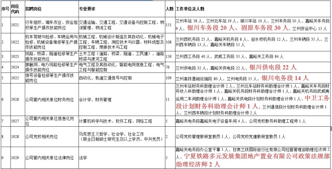 四. 其他事项本次招聘中代码1928岗位的应聘毕业生须为中共党员,学历须为全日制硕士研究生及以上学历,了解更多可点击链接http://rczp.china-railway.com.cn/lztlj/lzzpxx/public.jsp?jmetazpxxid=NTI3NA==咨询电话:0931-4921791