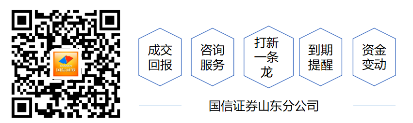 本订阅号的信息仅供山东分公司及所辖营业部客户使用,不因接收人收到本信息而视其为客户。市场有风险,投资需谨慎。本订阅号信息和意见仅供参考之用,不构成任何投资建议,投资者应结合自身情况自行判断是否采用本订阅号所载信息并自行承担风险。我公司及雇员对投资者使用本订阅号内容而造成的一切后果不承担任何法律责任。